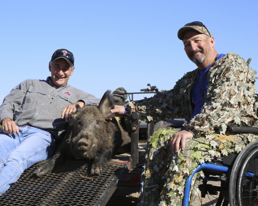 The veterans arrived at the ranch on a Friday afternoon and were gifted their new Matthews Mission Sniper Lite crossbows. After the two evening hunts and one morning hunt, all three veterans harvested large Texas hogs! Besides the successful hunts the veterans also got time to shoot skeet and tour the facilities while also relaxing and living large in Gravick Ranch’s trophy room. The Gravick Ranch staff enjoyed their time hunting and socializing with the veterans and would like to thank everyone that made the hunt a success, especially our sponsors CZ-USA, Bluff City Beer, Wilson Combat, Suppressed Tactical Solutions, and The Break.